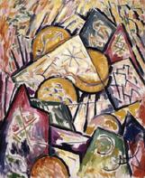 Being encouraged by Stieglitz to explore American subjects, Hartley turned to American Indian objects and designs. In 1918, he eagerly accepted an invitation of Mabel Dodge and her husband, artist Maurice Sterne, to visit them in Taos, New Mexico. By then, a Colony of Artists of eastern painters had formed, but Hartley remained aloof from them because he thought them provincial in their rejection of modernism. However, he loved the surroundings and did landscapes and Indian paintings, and this New Mexico work became the subject of a 1998 traveling exhibition titled “Marsden Hartley: American Modern,” organized by the Weisman Art Museum at the University of Minnesota.